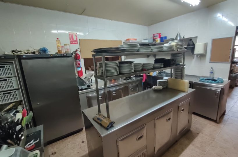 Cuenta con comedor, almacén, baños con acceso para minusválidos, cocina con salida de humos, terraza exterior y aires acondicionados.